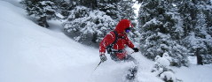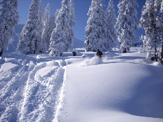 - Spezielle Freerideski erleichtern das Fahren im Tiefschnee.